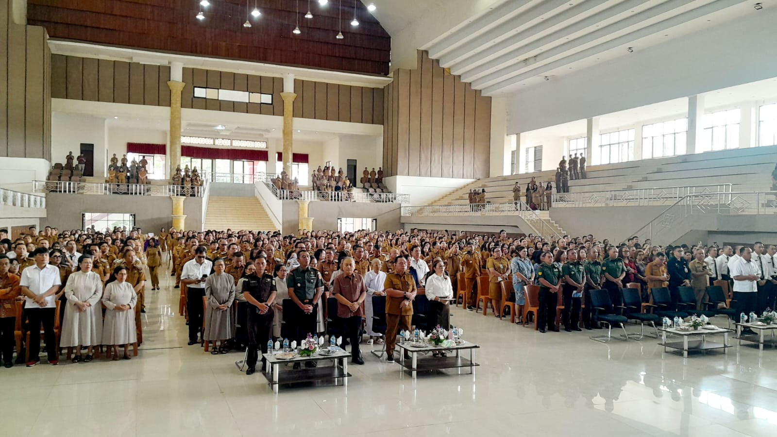 JENDELAANALISIS.COM. Minahasa – Pemerintah Kabupaten Minahasa mengawali kerja di bulan Maret 2026 dengan menggelar Apel Kerja yang dirangkaikan dengan Ibadah Oikumene di Gedung Wale Ne Tou, Tondano, Senin (2/3/2026).