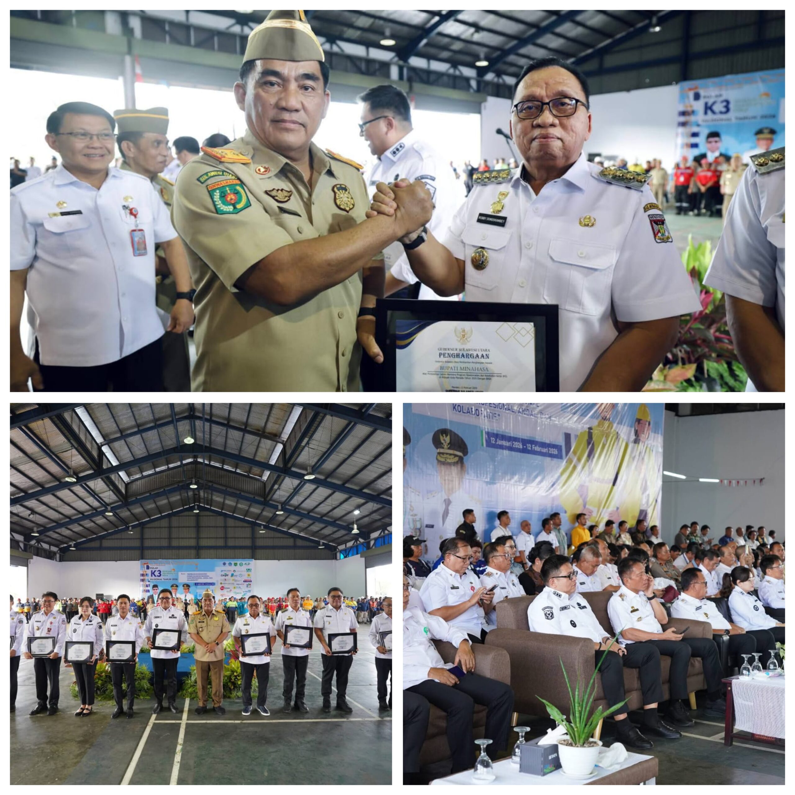 Dalam kesempatan itu, Gubernur Yulius Selvanus menyerahkan penghargaan kepada Bupati Minahasa, Robby Dondokambey SSi MAP, yang dinilai memiliki komitmen tinggi dalam pembinaan serta penerapan prinsip-prinsip K3 di wilayahnya.