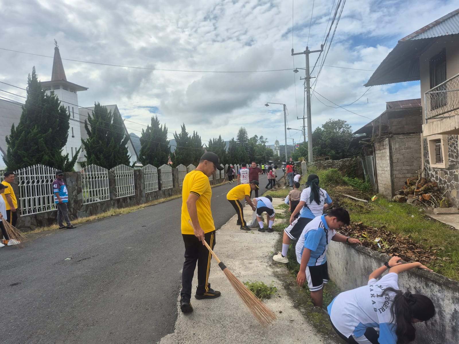Kegiatan kerja bakti tersebut dilaksanakan di sepanjang ruas jalan dari Desa Talikuran hingga Desa Pahaleten, dengan fokus pembersihan lingkungan di sepanjang badan jalan dan saluran drainase. Aksi ini melibatkan personel Polri, pemerintah Kecamatan Kakas, tenaga pendidik, serta pelajar tingkat SD dan SMP.