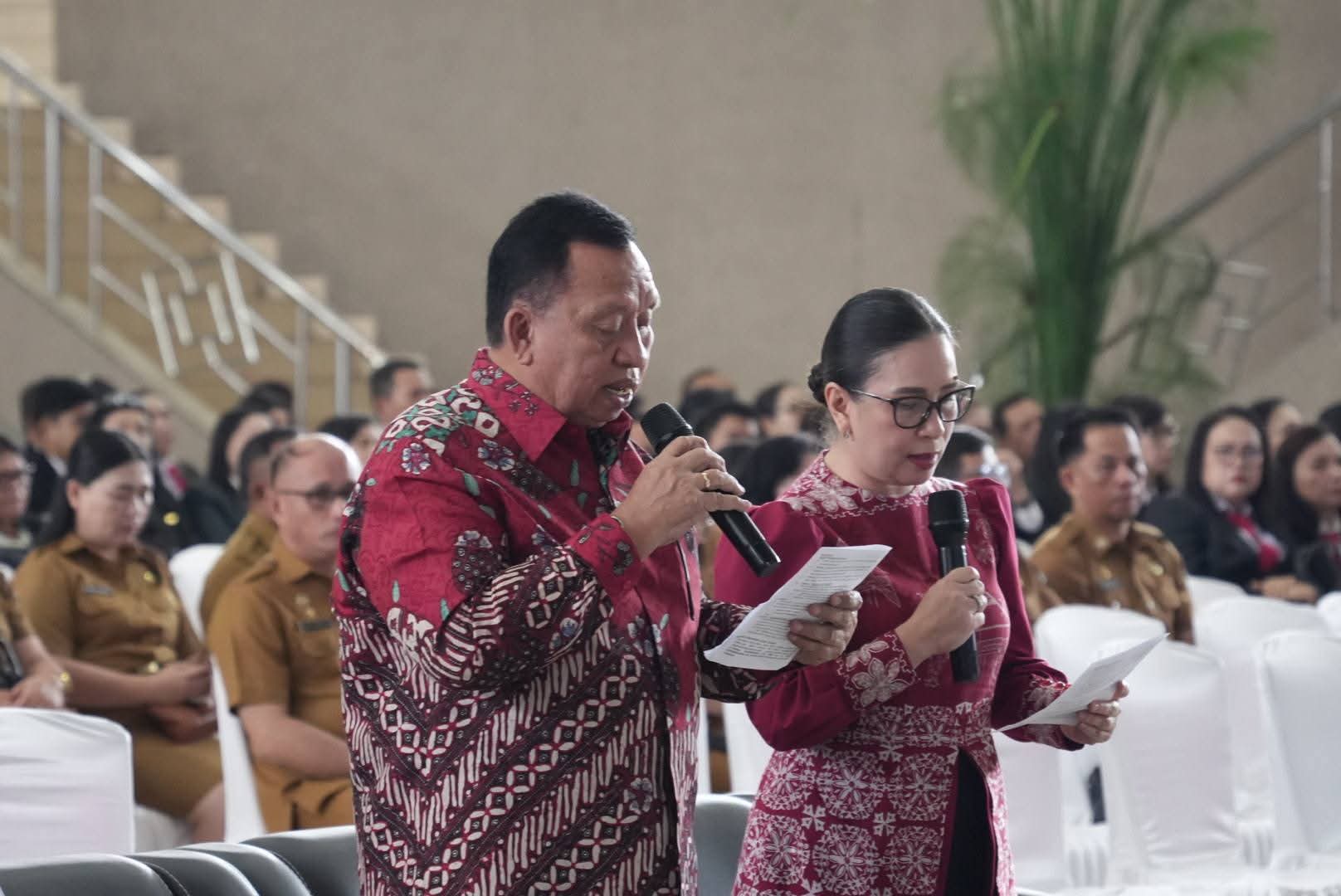 Sambutan Bupati Minahasa Robby Dondokambey di dampingi Wakil Bupati Vanda Sarundajang, mengatakan, “Perjalanan pengabdian saya dan wabup Vanda Sarundajang dalam mengemban amanah satu tahun yang lalu kami berdiri dengan tekad dan komitmen untuk bekerja sepenuh hati bagi tanah Minahasa yang kita cintai, amanah itu bukanlah sekadar jabatan, melainkan tanggung jawab moral dan panggilan pengabdian untuk menghadirkan perubahan yang nyata bagi masyarakat.”