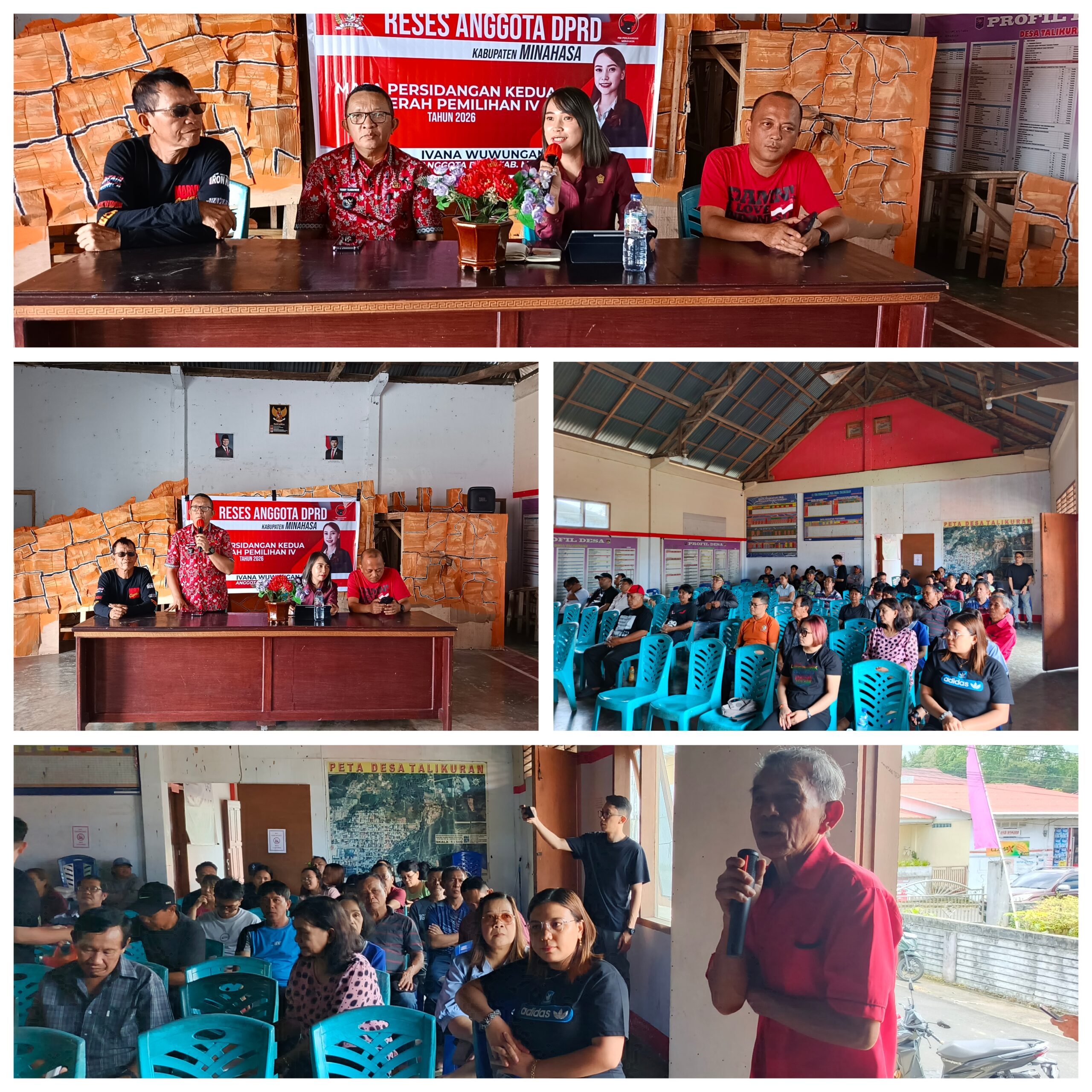 Hukum Tua Talikuran Yerry Tambuwun dalam sambutan mengatakan, “Sebagai Pemerintah desa menyampaikan terima kasih kepada anggota dewan Ivana Wuwungan yang telah memilih desa kami untuk diadakan tatap muka reses ini bentuk kepeduliaan dan kerja sama. Tidak hanya kali ini saja Ibu dewan membantu kami, namun sebelumnya sudah pernah membantu desa kami, oleh sebab itu kami memberikan apresiasi kepada anggota dewan Ivana Wuwungan yang boleh menyerap aspirasi masyarakat kami. Jelas Tambuwun. (ONK).