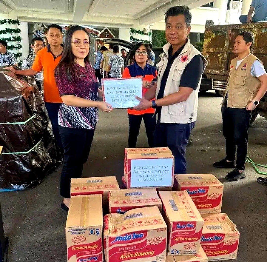 Bantuan yang diberikan berupa 50 sak beras dan 17 dus mi instan. Penyaluran bantuan tersebut dikoordinasikan melalui Posko Bantuan Bencana di Kantor Gubernur Sulut.