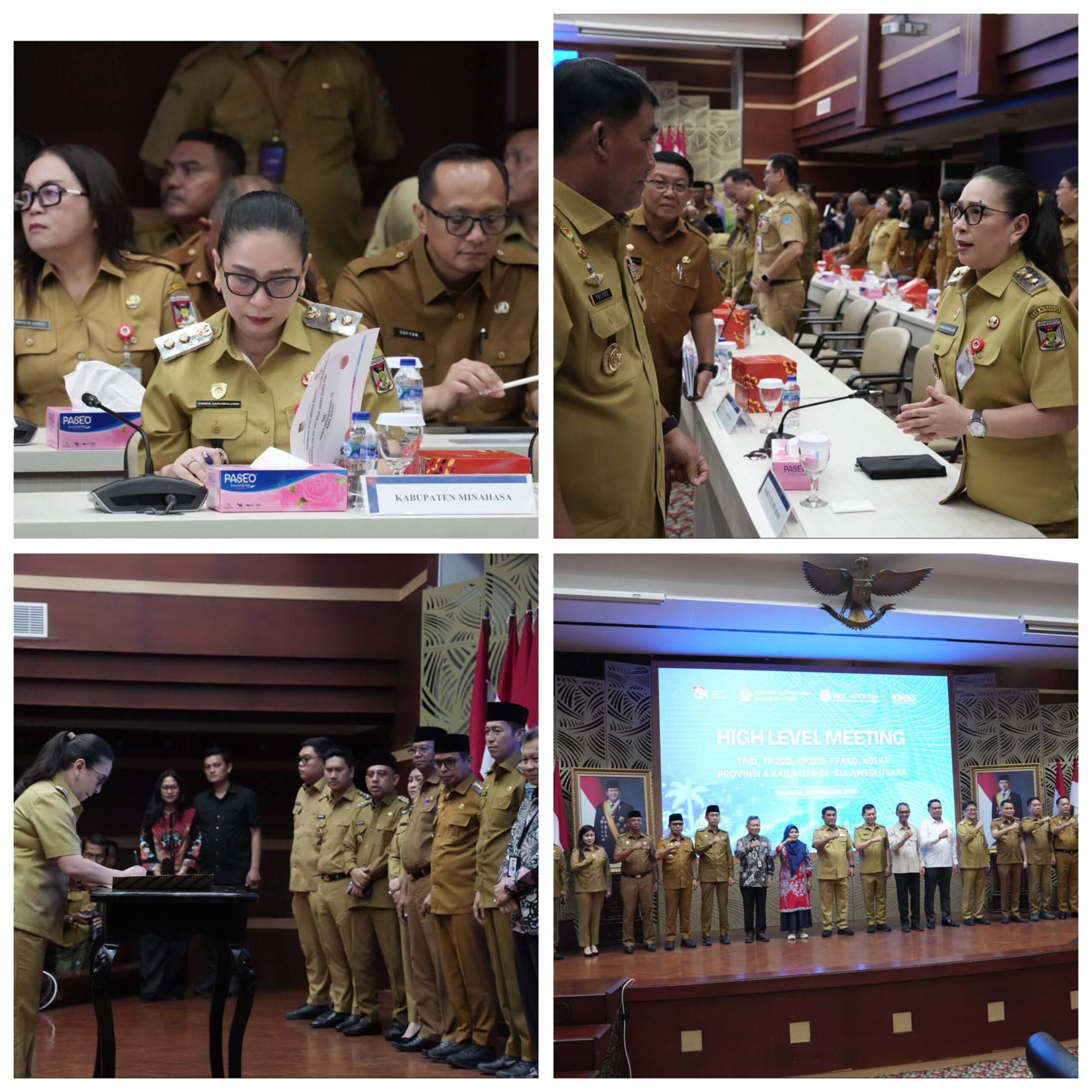 JENDELAANALISIS.COM. Manado — Wakil Bupati Minahasa, Vanda Sarundajang, SS, mengikuti High Level Meeting Tim Pengendalian Inflasi Daerah (TPID), Tim Percepatan dan Perluasan Digitalisasi Daerah (TP2DD), Tim Percepatan Akses Keuangan Daerah (TPAKD), serta Komite Daerah Ekonomi dan Keuangan Syariah (KDEKS) Provinsi dan Kabupaten/Kota se-Sulawesi Utara yang dirangkaikan dengan penandatanganan Nota Kesepahaman (MoU) optimalisasi Pendapatan Asli Daerah (PAD), Senin (23/2/2026).
